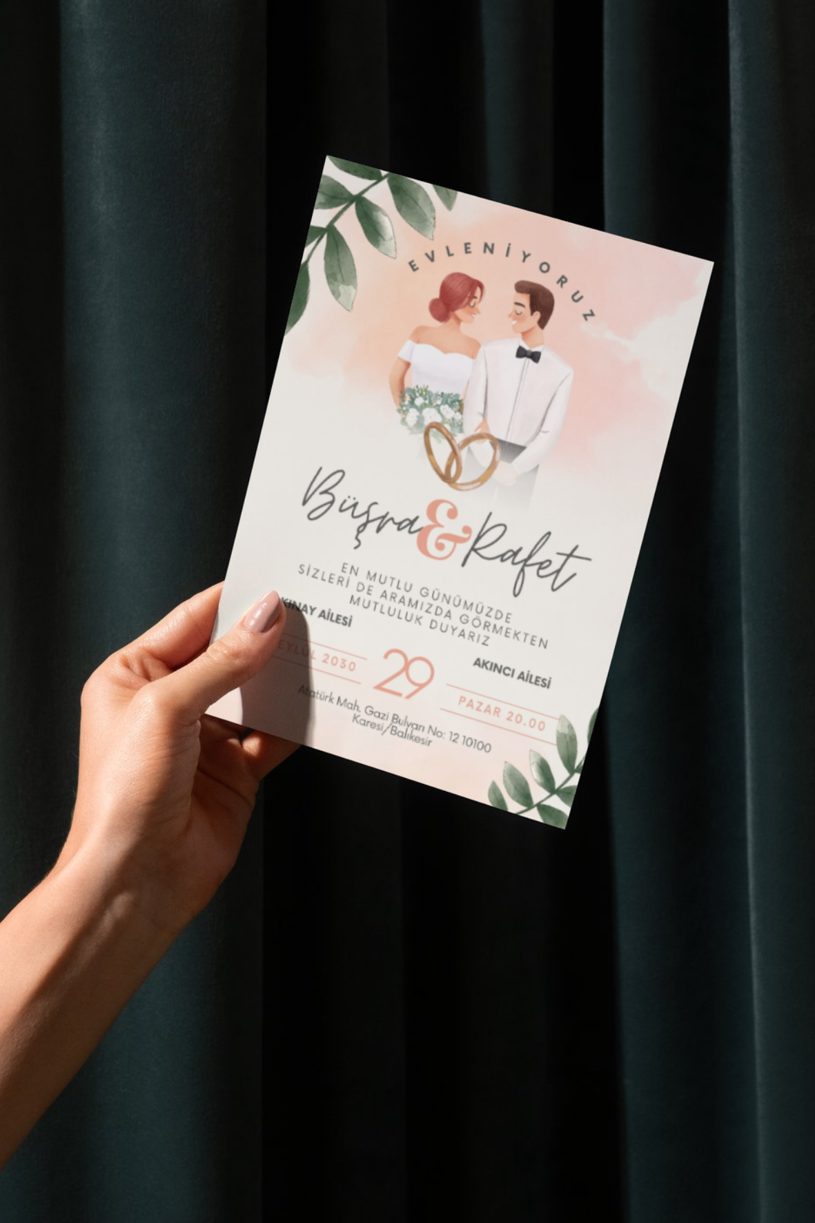 Düğününüzün en güzel ilk adımı olan davetiyeleriniz için geniş model seçenekleri, şık ve özgün tasarımlar sunuyoruz. Düğün konseptinize uygun klasik, modern veya minimal davetiye modelleriyle misafirlerinizi etkileyin. Kişiye özel tasarım, kaliteli baskı, uygun fiyat ve hızlı teslimat avantajlarıyla hayalinizdeki düğün davetiyesine kolayca sahip olun. Online siparişle zaman kaybetmeden düğününüzü unutulmaz kılın!