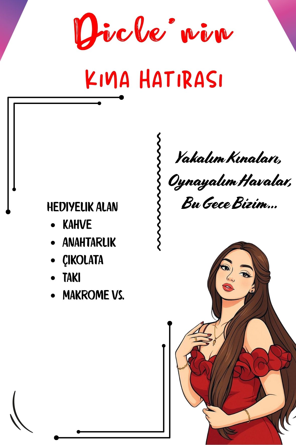 - Tasarım Konsepti: Kına gecenizi yansıtan zarif tema ve grafik unsurlar