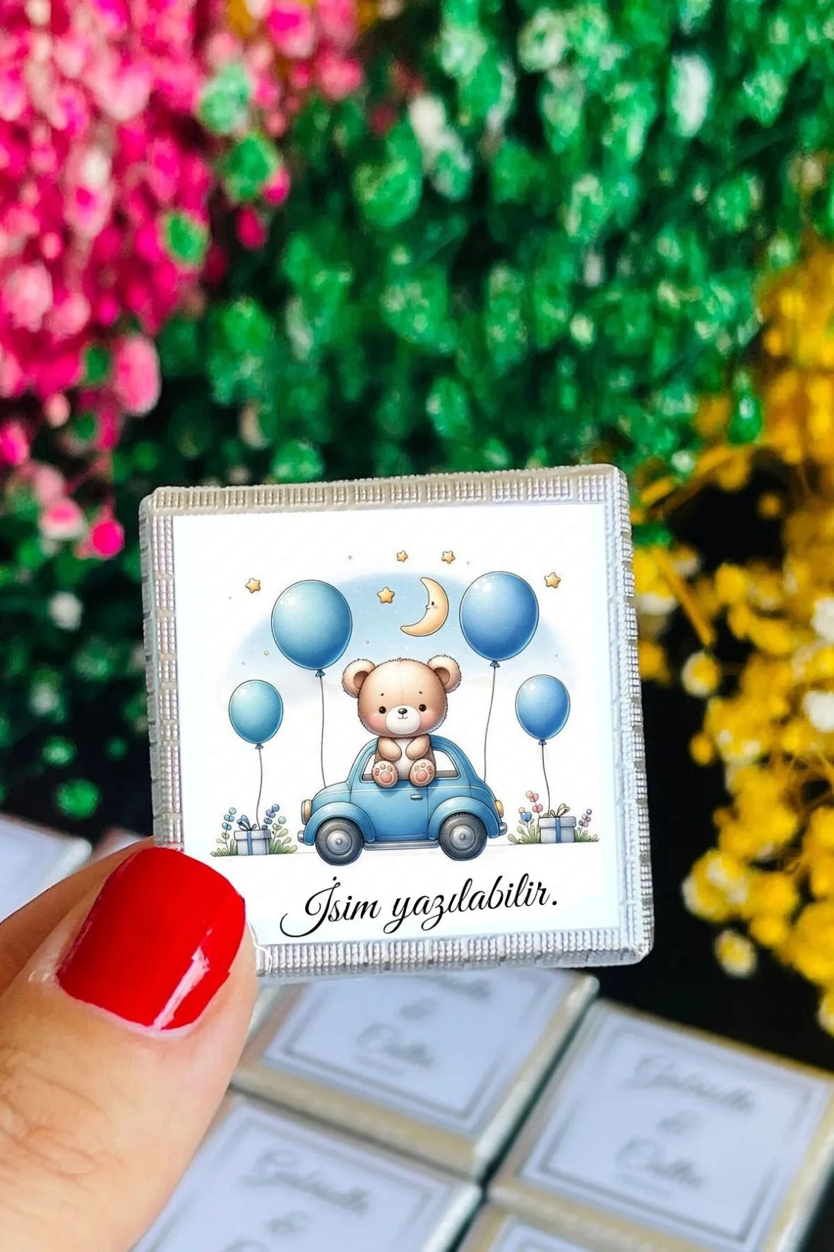 Yüksek kaliteli kuşe kağıt üzerine canlı renklerle basılmış bu kare çikolata etiketleri, arka yüzeylerinde yer alan yapışkan (sticker) özelliği sayesinde çikolatalara ve küçük yüzeylere kolayca yapıştırılabilir.