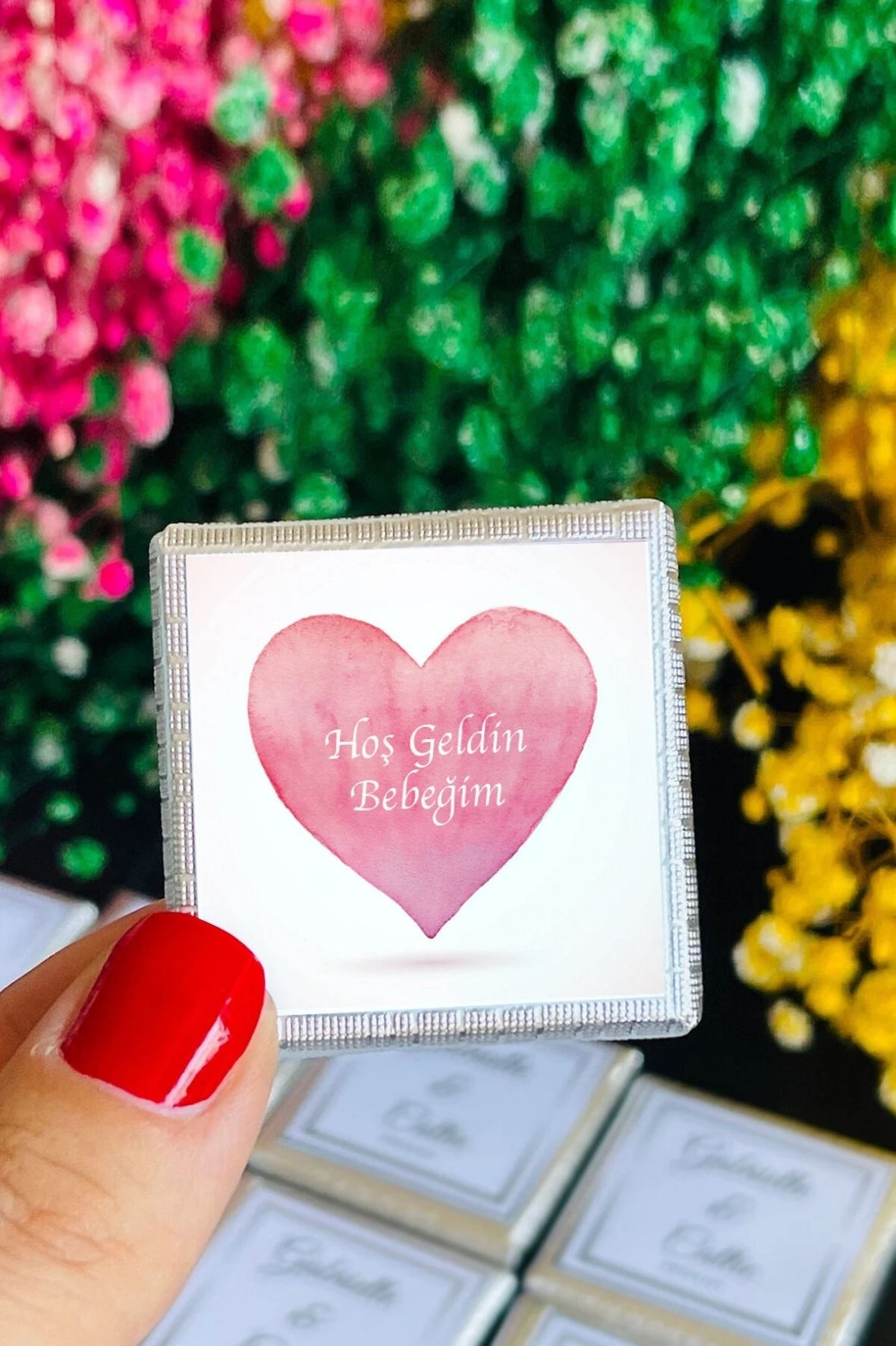 Yüksek kaliteli kuşe kağıt üzerine canlı renklerle basılmış bu kare çikolata etiketleri, arka yüzeylerinde yer alan yapışkan (sticker) özelliği sayesinde çikolatalara ve küçük yüzeylere kolayca yapıştırılabilir.