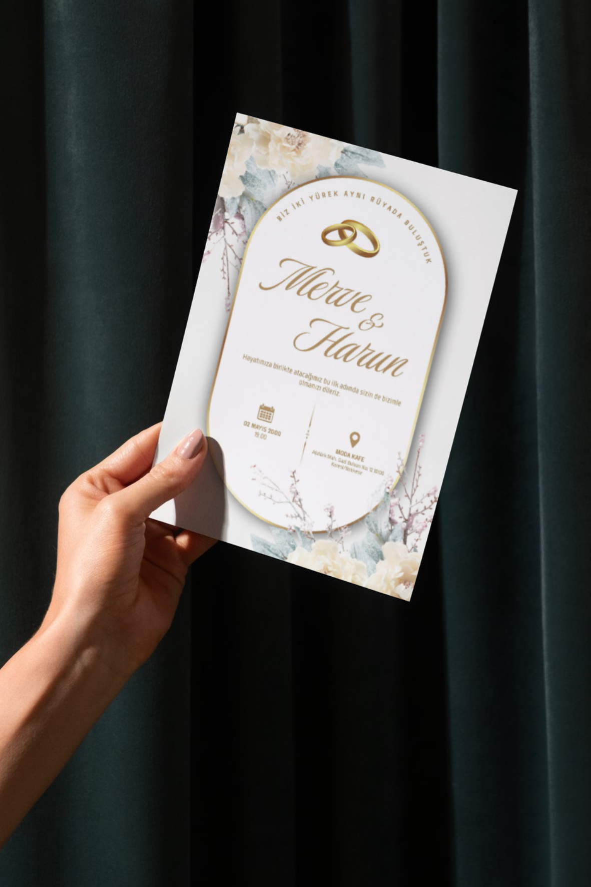 Bu nişan davetiyesi, sevginizi ve özel gününüzü estetik bir şekilde misafirlerinize duyurmak için mükemmel bir tercihtir.